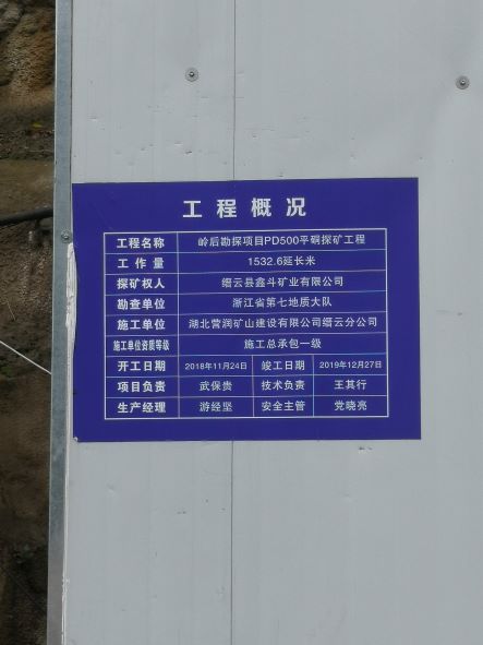 縉云縣鑫斗礦業有限公司是一家有限責任公司,成立于2007年8月7日,法定代表人:張圣,經營范圍:螢石(普通)地下開采;螢石礦勘探;螢石及螢石工藝品加工、銷售。 礦山新建項目名稱為浙江省縉云縣大源鎮嶺后螢石礦,擬建生產規模15萬噸/年。該礦山項目探礦權于2005年9月首次設立,委托浙江省第七地質大隊組織實施。最新核發的探礦權證有效期限為2020年05月26日至2022年05月26日,勘查范圍由22個拐點組成。 |